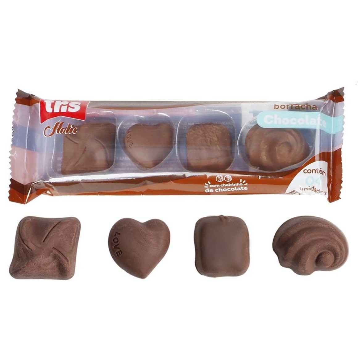 Borracha Tris Holic Chocolate com Cheirinho de Chocolate com 4 un. Ref. 912619